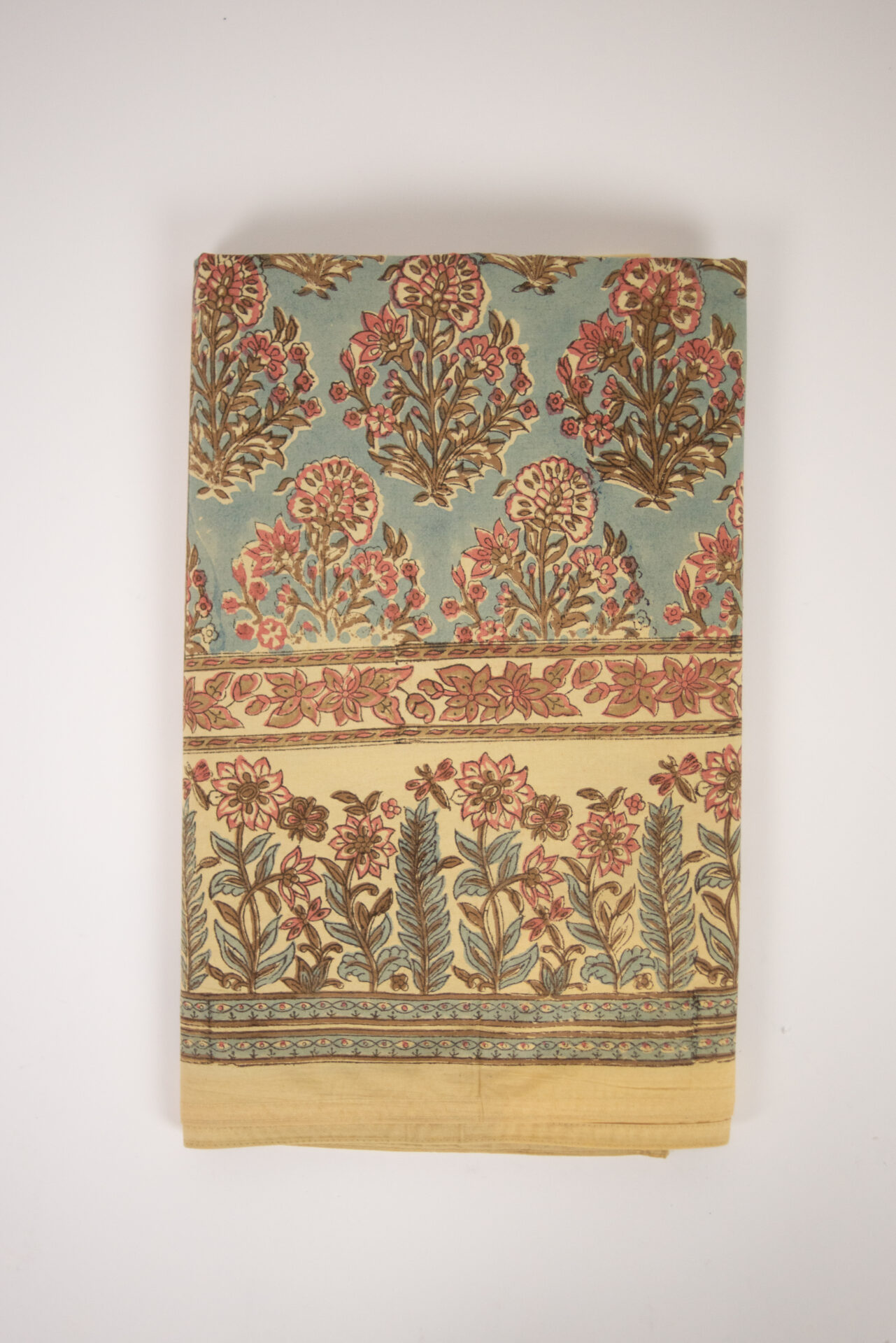 Floral tablecloth in 100% cotton, made using a handcrafted block printing technique.