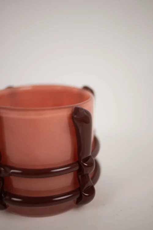 Handjord och unik ljuskopp i glas.