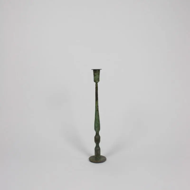 Candlestick in cast iron where the green color may vary slightly in shade.