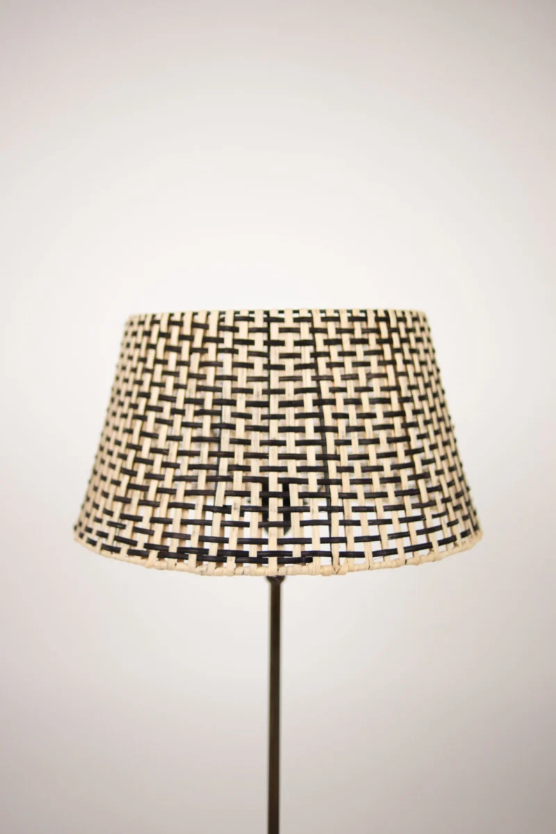 Abat-jour en rotin qui diffuse une lumière douce et agréable à travers ses ouvertures.