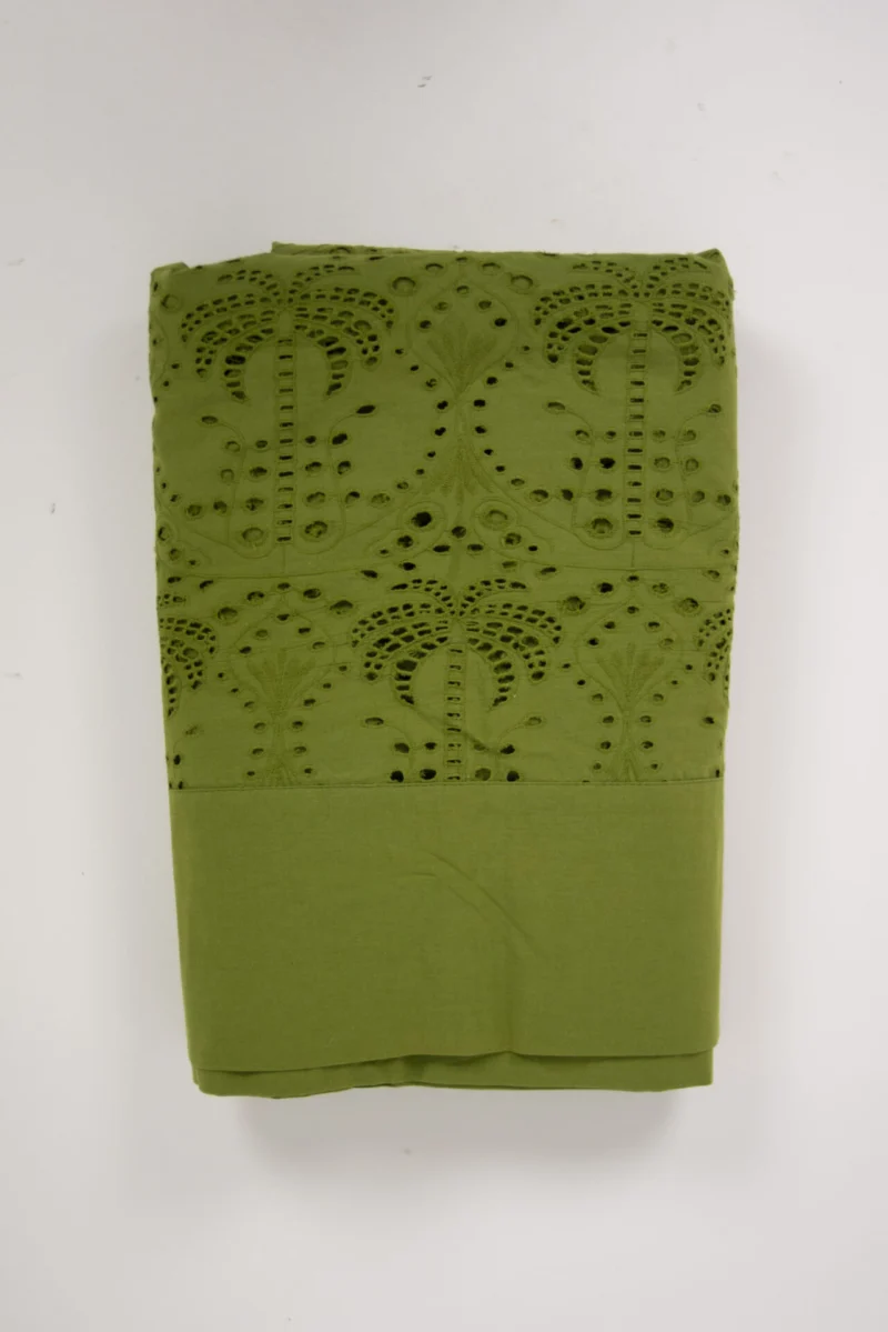 Nappe 100% coton avec broderie anglaise. Disponible en quatre superbes couleurs qui embelliront n'importe quelle table.