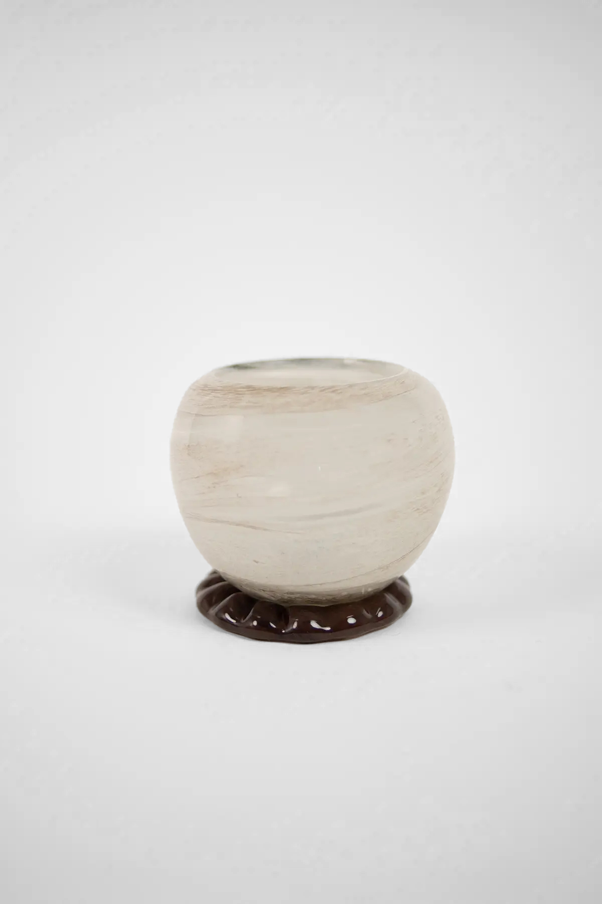 Photophore fait à la main avec une forme douce et romantique et un pied ondulé. Magnifique à combiner avec un vase du même style.
