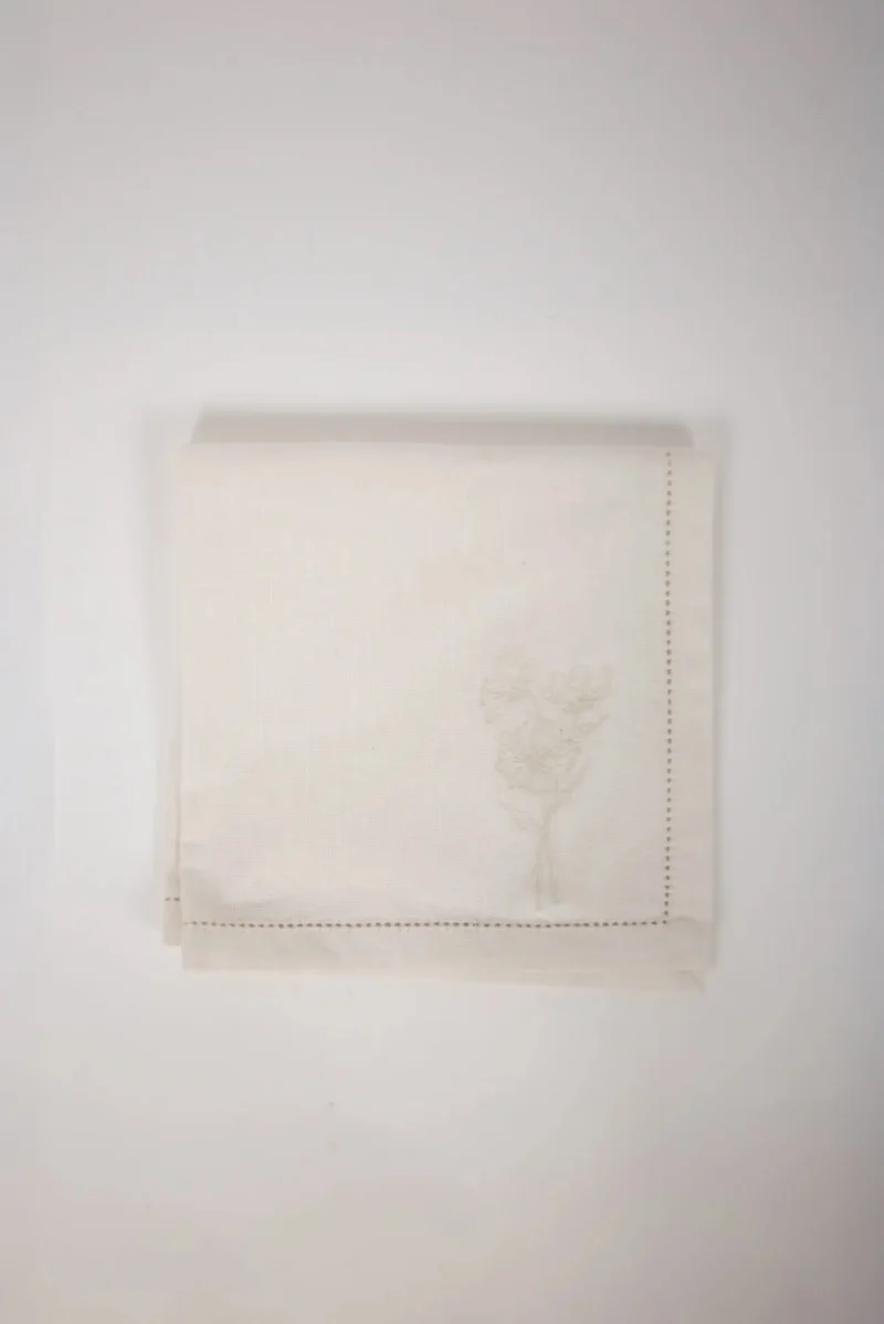 Serviette avec une fleur magnifiquement brodée – parfaite pour toutes les tables grâce à son design minimaliste.