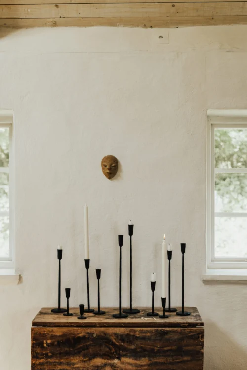 Ina est une série de chandeliers en métal fabriqués à la main, disponibles en plusieurs hauteurs qui se combinent parfaitement les unes avec les autres
