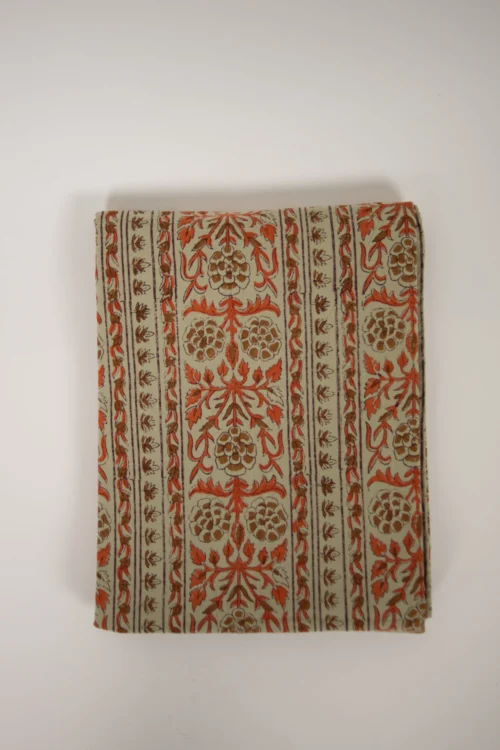 Nappe florale en 100% coton, réalisée par impression au bloc, à la main