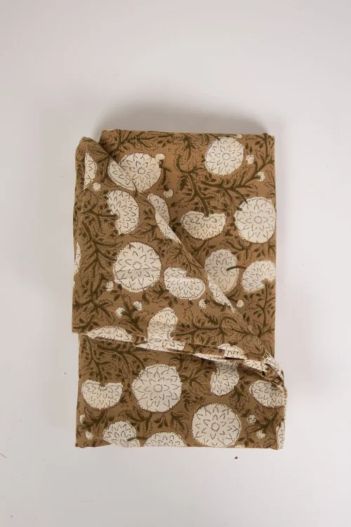 Nappe florale en 100% coton, réalisée par impression au bloc, à la main