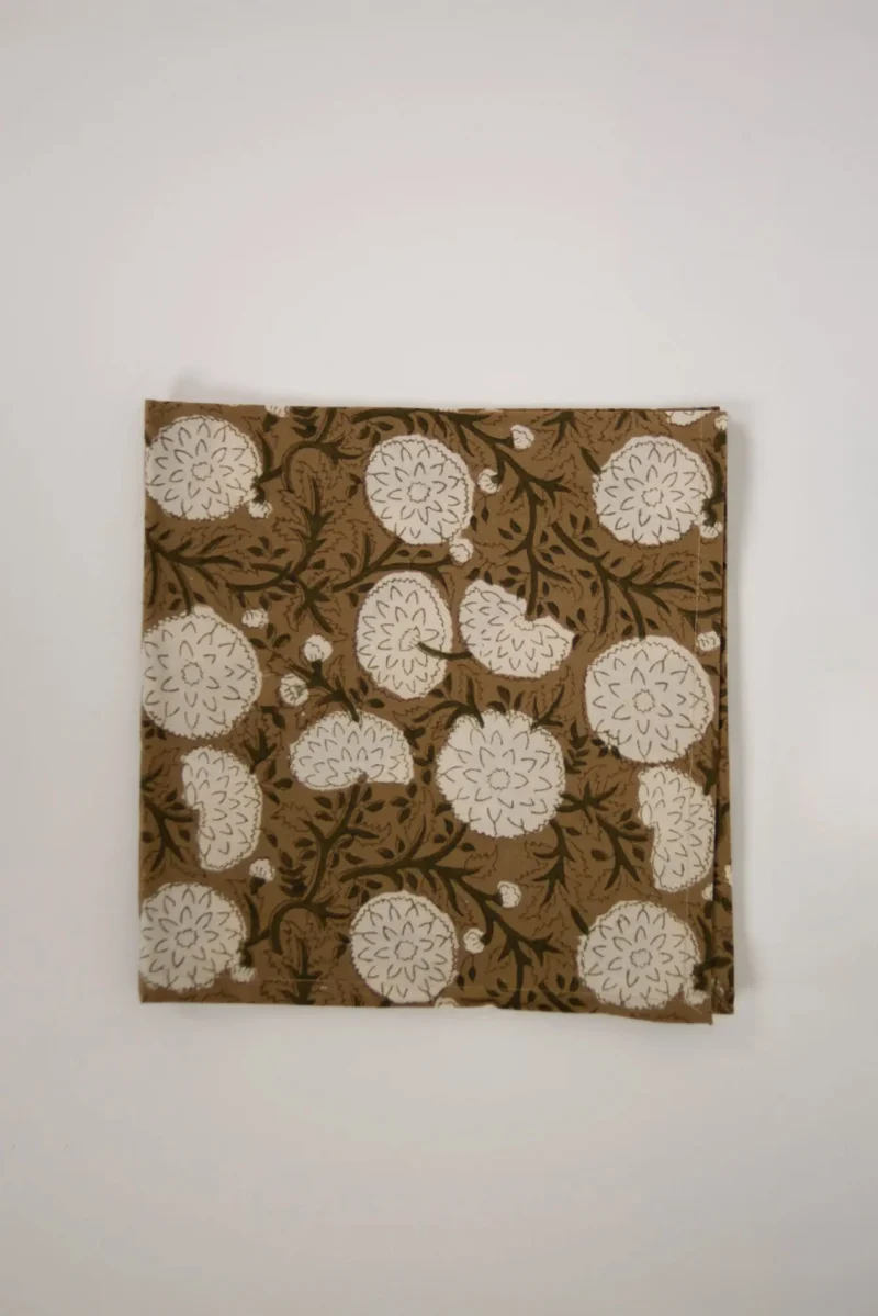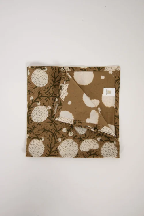 Serviette de table en 100 % coton, fabriquée selon la technique de l'impression au bloc artisanale.