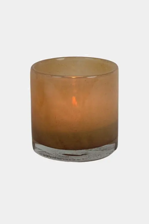 Ce photophore est réalisée en verre soufflé à la bouche, selon une technique traditionnelle qui donne de beaux mélanges dans le verre. Comme il est fabriqué à la main, il existe des variations de couleur et de forme qui rendent chaque pièce unique. Son bord transparent en bas lui confère également un look très exclusif.