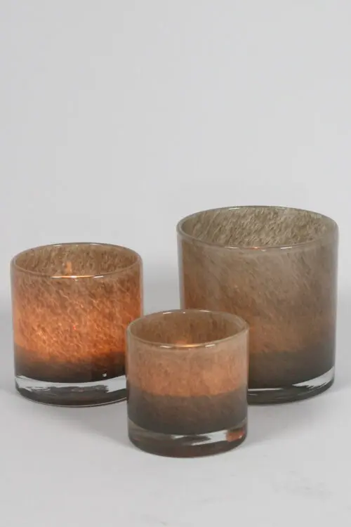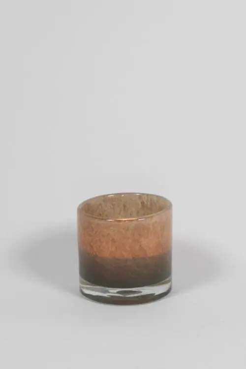 Ce photophore est réalisée en verre soufflé à la bouche, selon une technique traditionnelle qui donne de beaux mélanges dans le verre. Comme il est fabriqué à la main, il existe des variations de couleur et de forme qui rendent chaque pièce unique. Son bord transparent en bas lui confère également un look très exclusif.