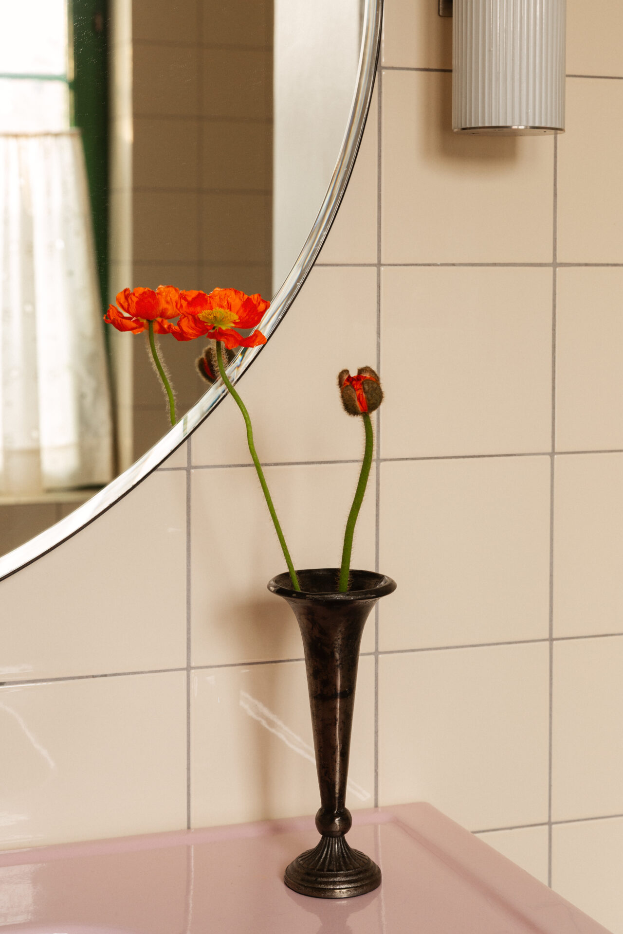 Vase en aluminium, idéal pour les compositions simples avec quelques fleurs seulement. Sa base étroite maintient les tiges en place, garantissant ainsi que vos fleurs restent bien droites.
