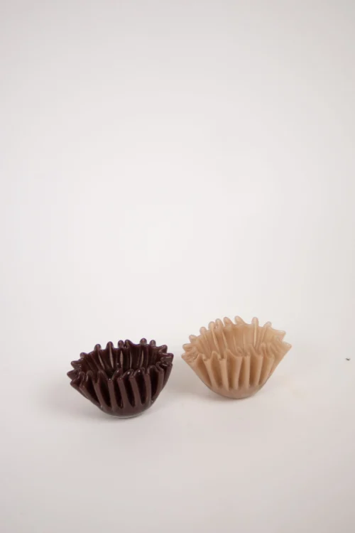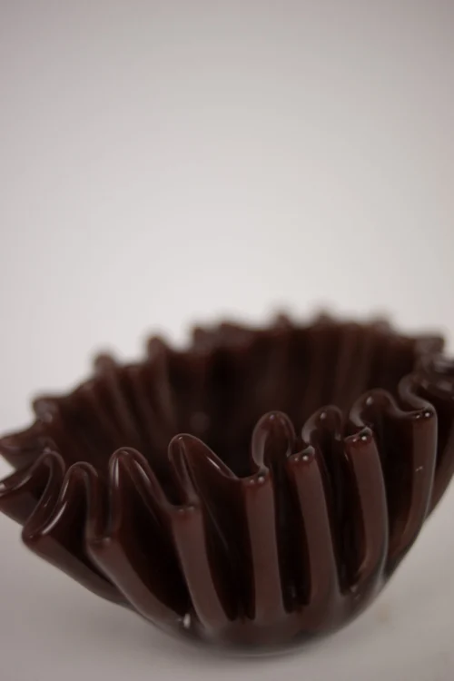 Ljuskopp i brunt glas med vågig kant. Handgjord och unik.