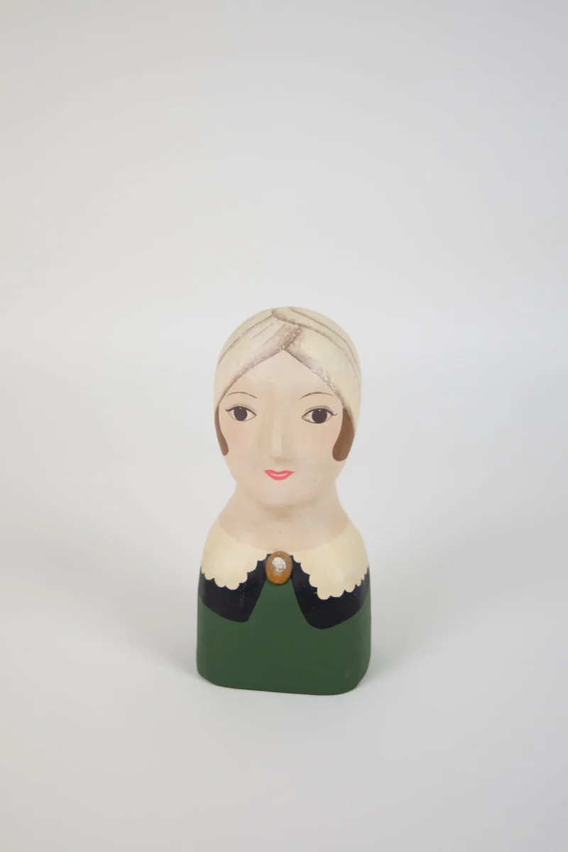 Handgjord och handmålad byst, inspirerad av 1920-talets Art Deco. Låt den pryda en hylla och framhäv dess skönhet och hantverk.