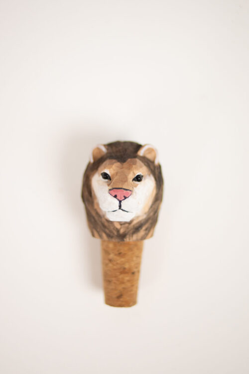 Dekorativ handdmålad flaskkork med lejonmotiv. En lekfull och stilren detalj som sätter karaktär på flaskan.