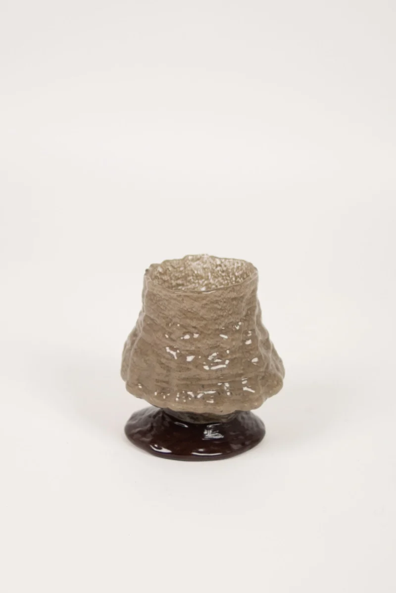 Munblåst ljuslykta med oregelbunden och asymmetrisk design.