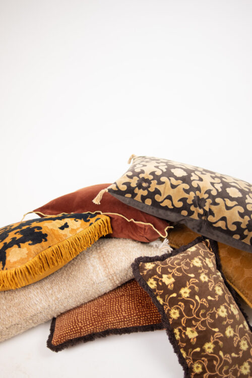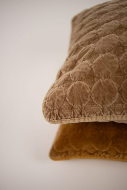 Detta kuddfodral har ett tydligt 70-talsinspirerat mönster som ger ett varmt och levande uttryck. Den mjuka ytan förstärker känslan och gör kudden både dekorativ och behaglig att använda.