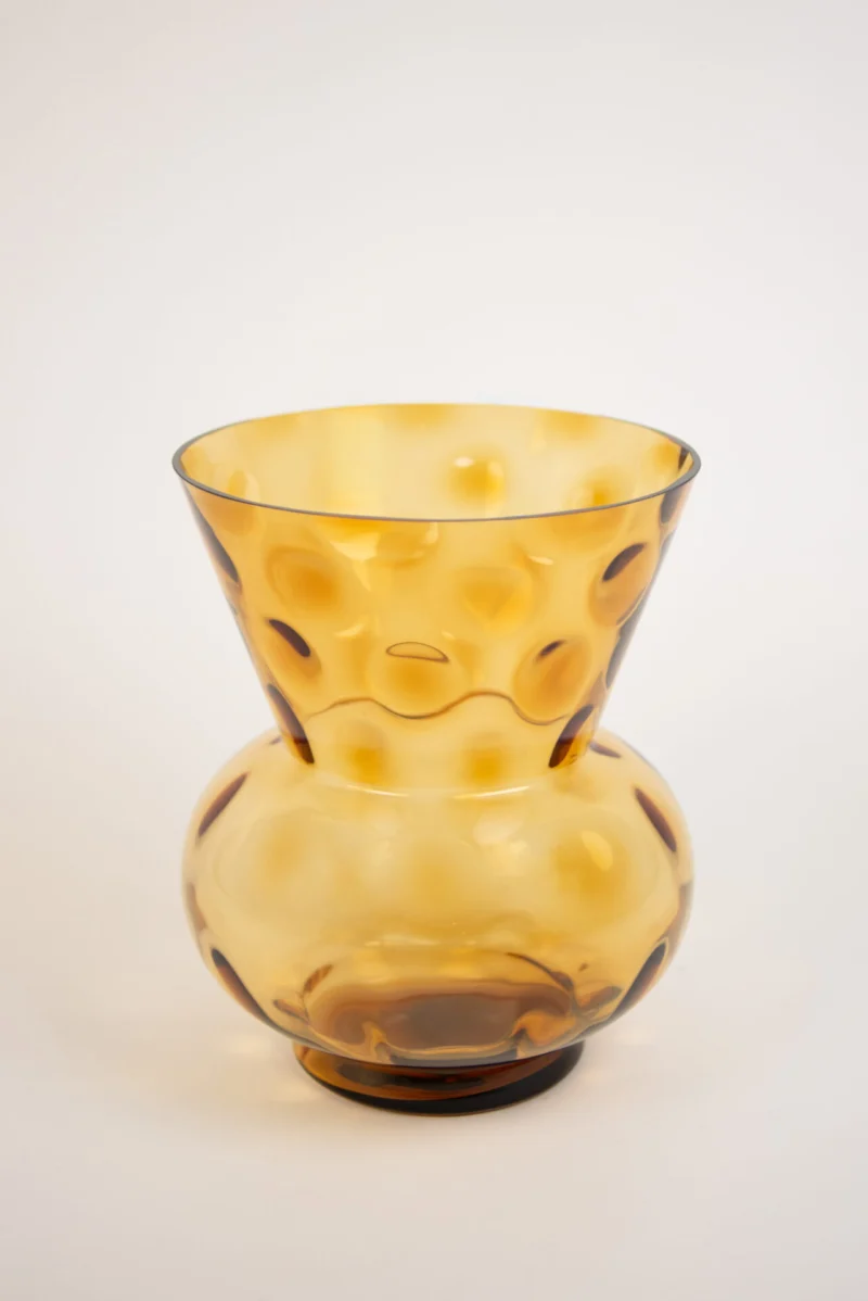 Nado vas är en dekorativ och iögonfallande vas med mjuka former. Den varma tonen i glaset ger ett levande uttryck och gör att vasen tar plats utan att kännas tung.