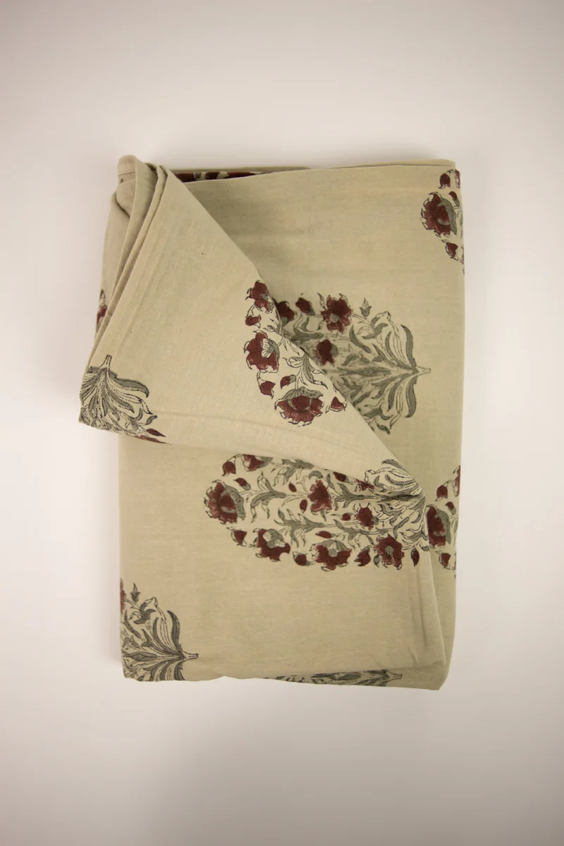 Bordsduk i 100% bomull, tillverkad med handgjord blocktrycksteknik.
