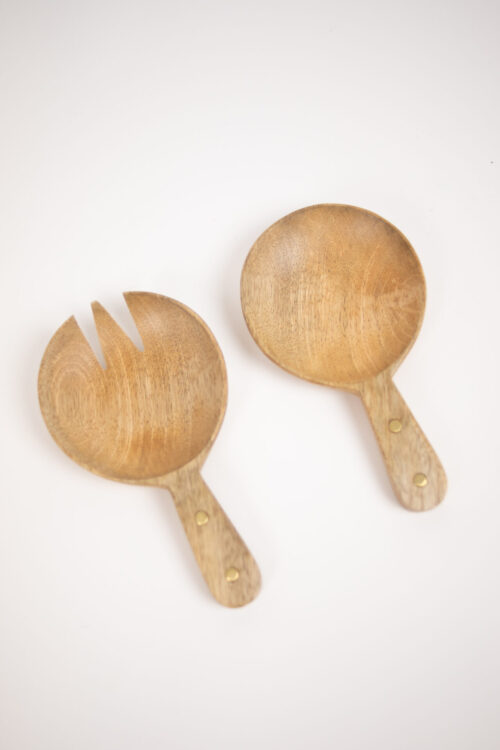 Zen salladsbestick är tillverkade i mangoträ och har en varm ton med naturlig ådring. För att bevara bestickens skönhet och livslängd rekommenderas handdisk.